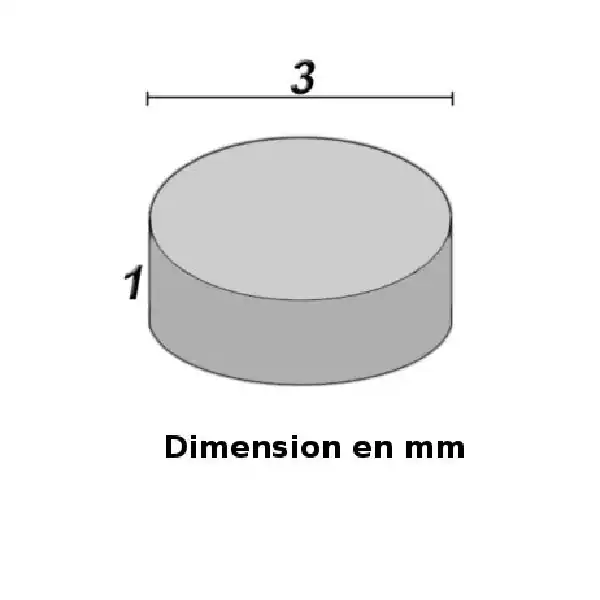 • Dimensions : 3 mm (diametre) x 1 mm ( épaisseur)