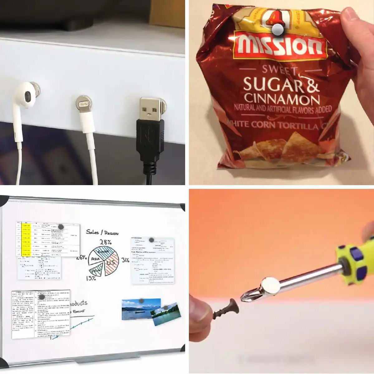 • Fixer des photos, documents ou notes sur un tableau magnétique ou un frigo.