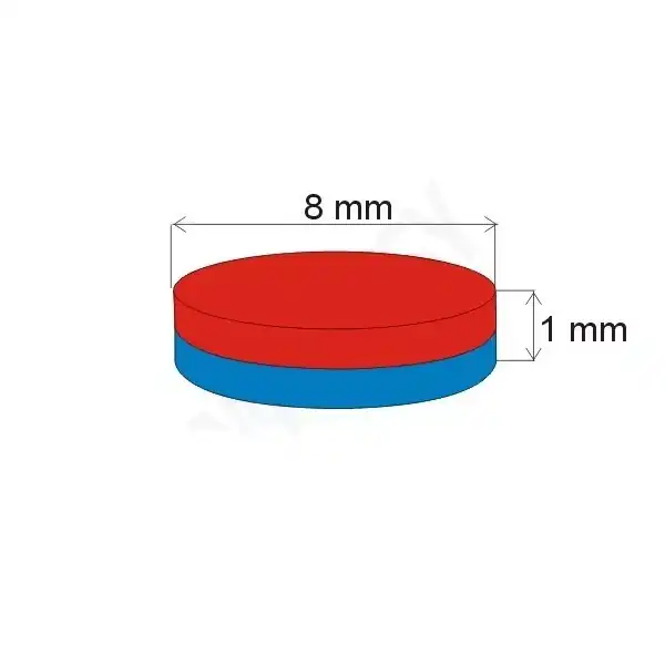 Aimant néodyme rond 8mm x 1mm, idéal pour une fixation solide et discrète. Fabriqué en néodyme-fer-bore, le matériau magnétique le plus puissant au monde, cet aimant combine compact et ultra performant, parfait pour de nombreuses utilisations.