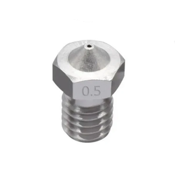 Bien que l’impression avec une buse en acier inoxydable soit légèrement plus lente qu’avec une buse en laiton en raison de sa conductivité thermique inférieure, elle offre une durabilité supérieure et une excellente résistance à l’usure, idéale pour les projets exigeants.