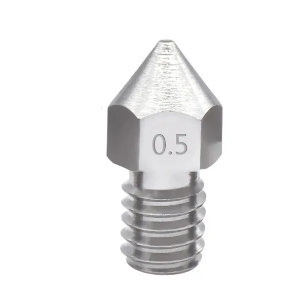 Bien que l’impression avec une buse en acier inoxydable soit légèrement plus lente qu’avec une buse en laiton en raison de sa conductivité thermique inférieure, elle offre une durabilité supérieure et une excellente résistance à l’usure, idéale pour les projets exigeants.