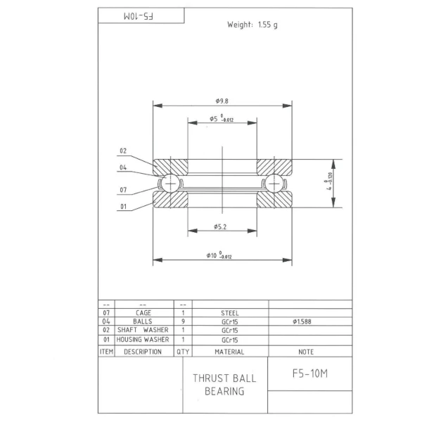 BUTEE A BILLES F5-10M 5x10x4mm roulement à Billes axial