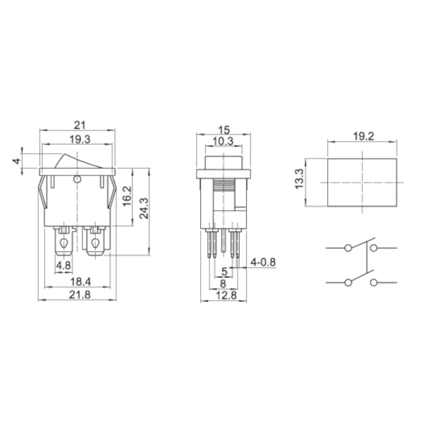 • Type: DPST (Double Pole Single Throw) – Bipolaire, unidirectionnel