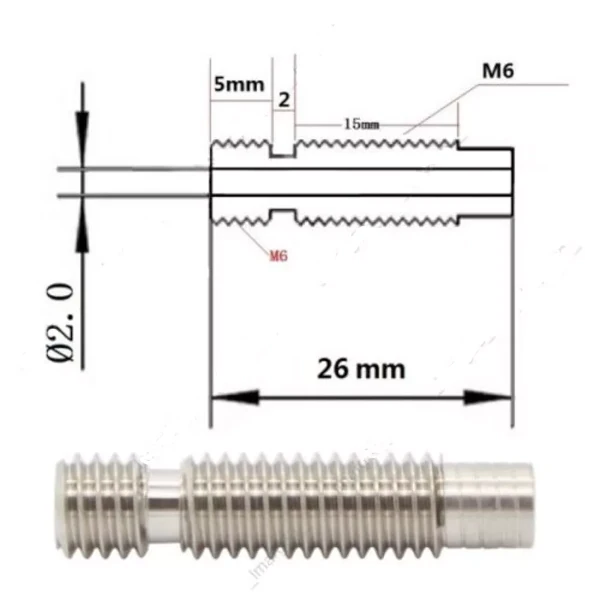 Ce tube en acier inoxydable M6, conçu pour améliorer les performances de votre imprimante 3D. Ce composant essentiel, compatible avec les blocs chauffants de type E3D V6, garantit une extrusion fluide et précise du filament de 1.75mm, tout en réduisant les risques de colmatage. Idéal pour les amateurs comme pour les professionnels de l’impression 3D.